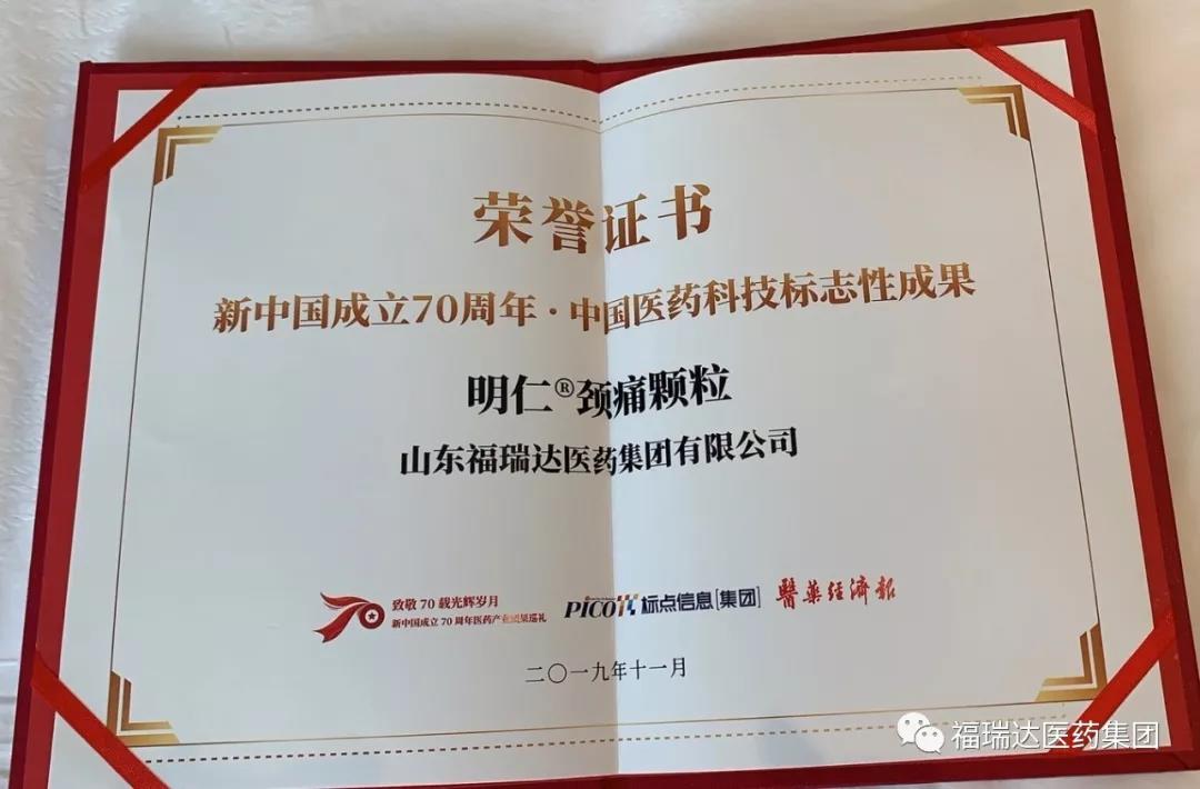 福瑞达医药集团旗下明仁®颈痛颗粒荣登新中国医药科技标志性成果榜单!